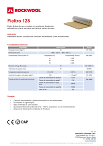Fieltro de lana de roca con una de sus caras revestida con un complejo de aluminio reforzado, que proporciona función de barrera de vapor.