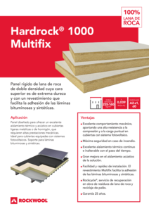 Panel rígido de lana de roca de doble densidad. La cara superior posee un revestimiento que facilita la adhesión tanto de láminas impermeables bituminosas, como sintéticas. Panel diseñado para ofrecer un excelente aislamiento térmico y acústico en cubiertas ligeras metálicas que requieren altas prestaciones mecánicas. Ideal para cubiertas equipadas con sistemas fotovoltaicos. Soporte para láminas bituminosas y sintéticas.