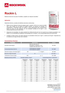 La borra RockIn L ha sido diseñada para el aislamiento térmico y acústico en las siguientes aplicaciones: Relleno de cámaras de aire de espesor igual o superior a 80 mm en muros de doble hoja de mampostería, entramado ligero de madera o trasdosados de placa de yeso laminado, con una densidad de insuflado de 55 kg/m³ y una conductividad térmica de 0,036 W/m·K. Aislamiento de buhardillas, mediante soplado con máquina neumática o turbina, con una densidad de instalación recomendada de entre 21 y 25 kg/m³ y una conductividad térmica de 0,045 W/m·K. Insuflado en falsos techos, aplicando una densidad mínima de 21 kg/m³ y máxima de 55 kg/m³, en función de la resistencia de carga del falso techo existente.