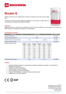 La borra RockIn S es especialmente adecuada para el relleno de cámaras en muros de doble hoja de mampostería o entramado de madera. Se recomienda su aplicación en cavidades con una profundidad comprendida entre 30 y 80 mm, mediante insuflado tanto desde el exterior como desde el interior. La instalación por insuflado debe realizarse de abajo hacia arriba, avanzando de izquierda a derecha o viceversa, y asegurando un relleno homogéneo. Para ello, se recomienda utilizar los orificios de inspección como método de comprobación visual.