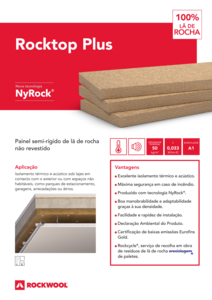 Panel semirrígido de lana de roca sin revestimiento, habitualmente utilizado en aplicaciones donde el panel queda oculto tras la instalación de un acabado posterior. Aislamiento térmico y acústico para aplicación bajo forjado en contacto con el exterior o con espacios no habitables, como parkings, garajes, locales o vestíbulos.