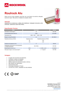 Stone wool roll with aluminium. Products: Cod. 128, Cod. 129, Roulrock ALU, ROCKWOOL 133, ROCKWOOL 133, Fieltro 128, Manta 129