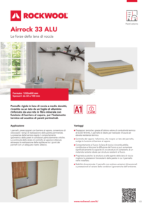 Pannello rigido in lana di roccia a media densità, rivestito su un lato da un foglio di alluminio rinforzato da una rete in fibra minerale con funzione di barriera al vapore, per l’isolamento termico ed acustico di pareti perimetrali.