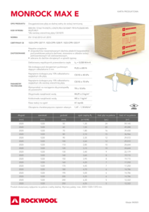 Deklarowany współczynnik przewodności cieplnej 0,038 W/m K. Płyty oferowane w wymiarach 2020 x 1220 mm o grubości od 50 do 250 mm.